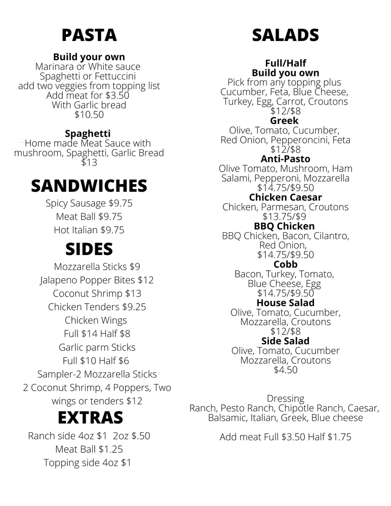 Choose from: marinara or white sauce, spaghetti or fettuccini.