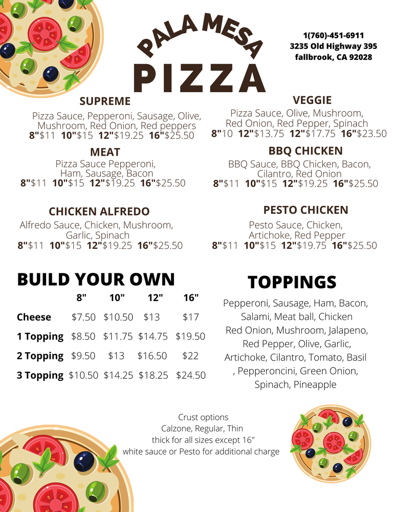 Pala Mesa Pizza Menu (Update 2025)